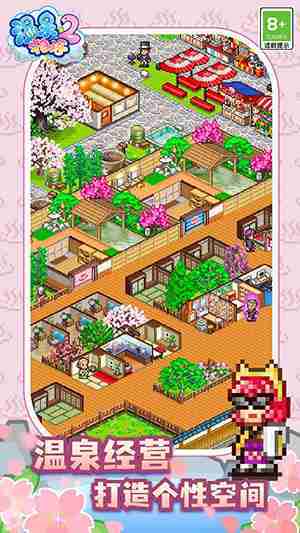 《温泉物语2》是一款模拟经营温泉旅馆的游戏。。。。玩家可以建设客房和店铺,,,,招揽客人,,挖掘温泉,,打造专属温泉乡,,成为受全世界瞩目的温泉旅馆。。通过游戏,,,,让大家活力十足地面对明天吧!!!